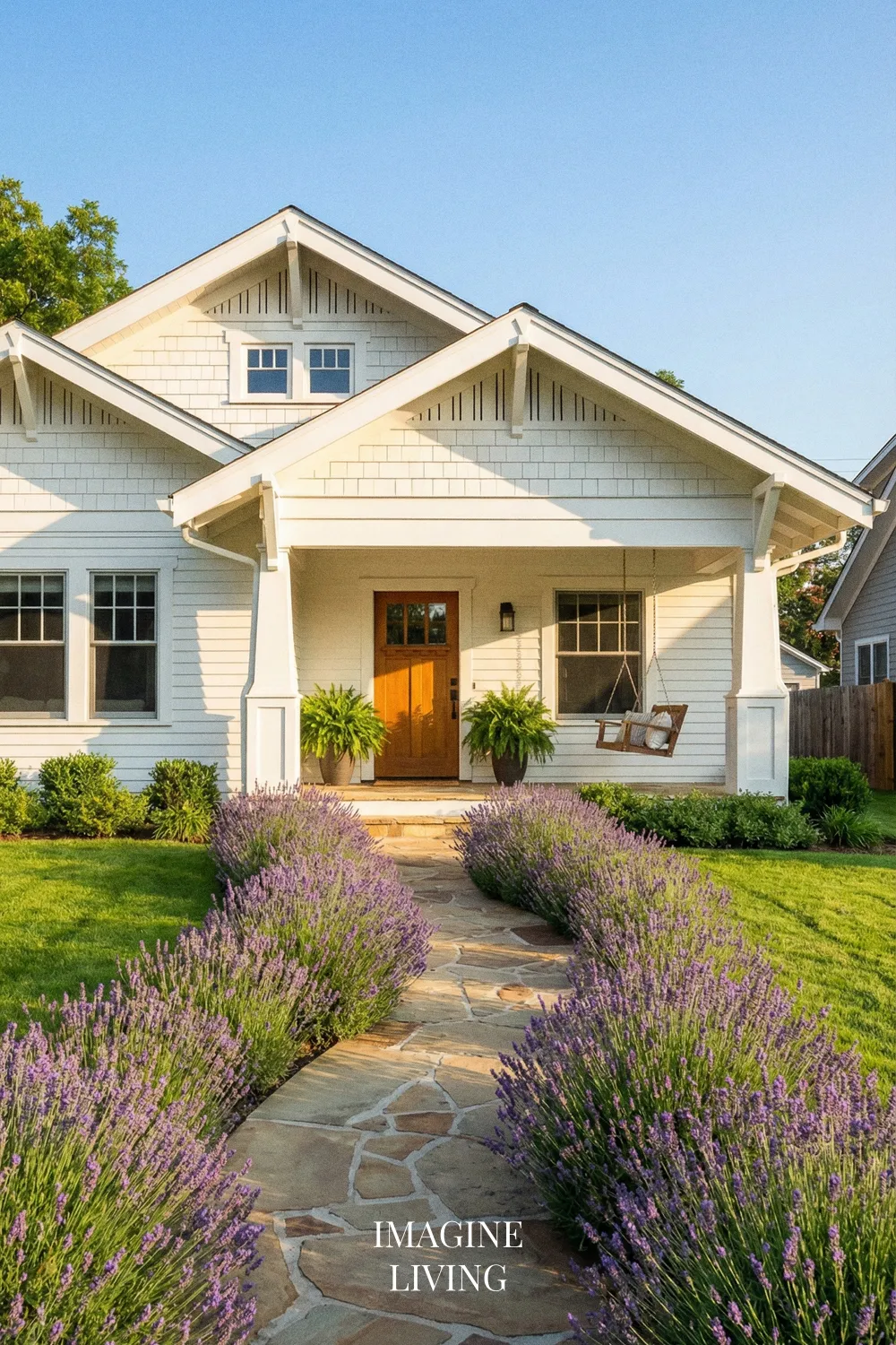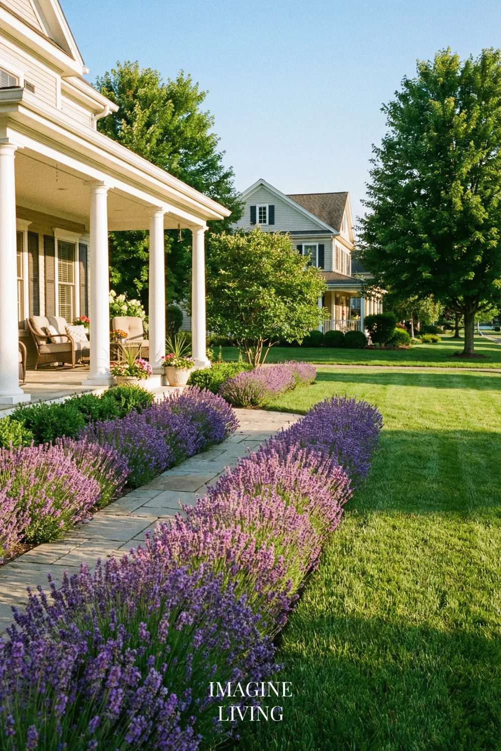 Lavender Walkway for a Classic American Front Yard
