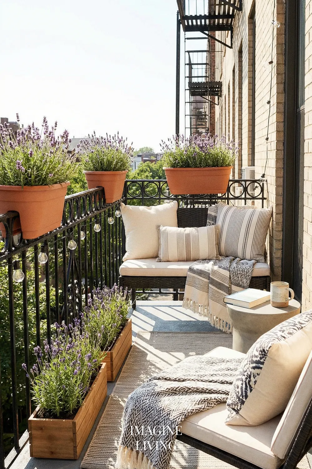 Romantic Lavender Balcony with Soft Summer Textiles