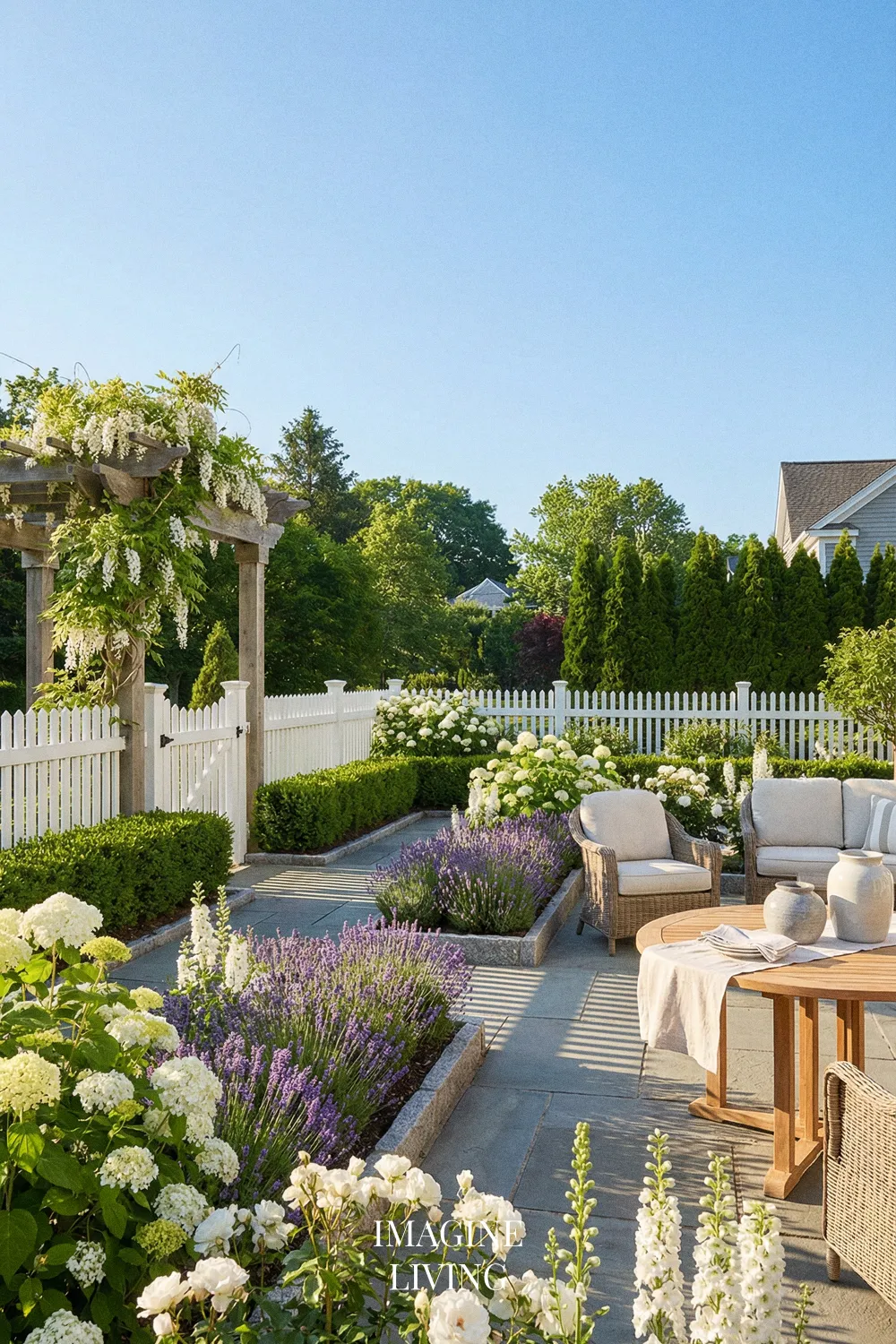 The beauty of this pairing is balance. Lavender brings movement and fragrance, while white flowers add brightness and a sense of calm. Together they create a layered look that feels light, fresh, and expensive without needing too many different colors. It is a very effective way to build a garden that looks intentional in both close-up views and wider backyard scenes.