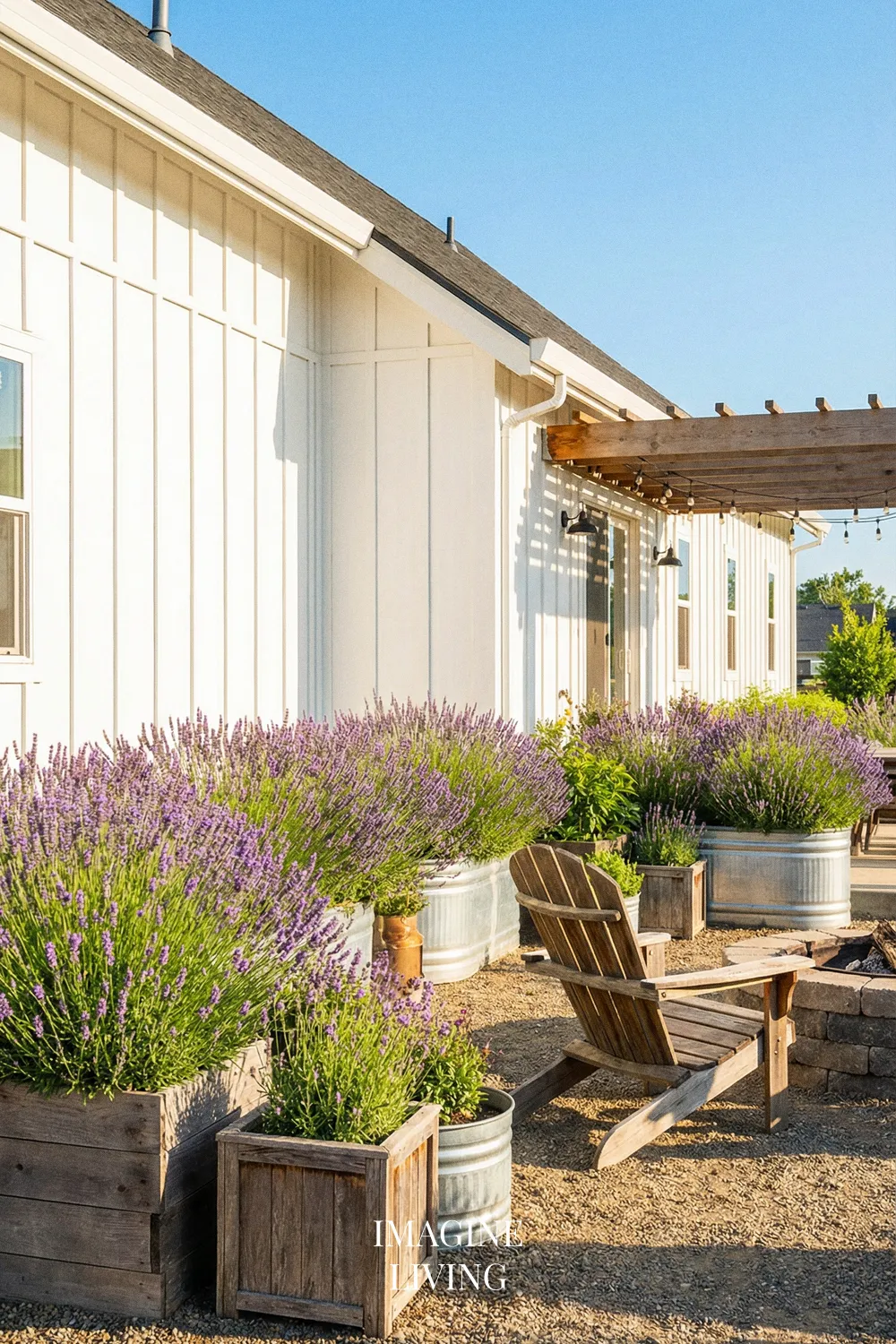 In a modern farmhouse setting, lavender brings a softness that keeps the space from feeling too stark or too styled. Against white siding, fencing, gravel, or simple wood details, the plant adds exactly the kind of relaxed seasonal texture that makes an outdoor corner feel complete.