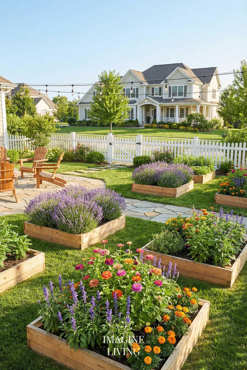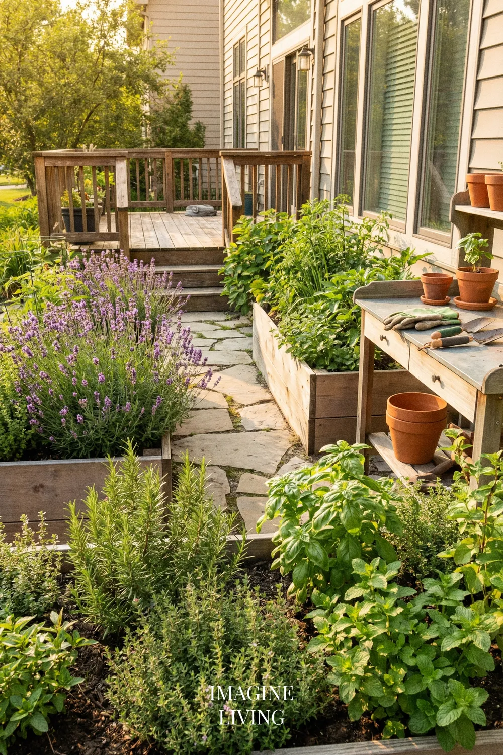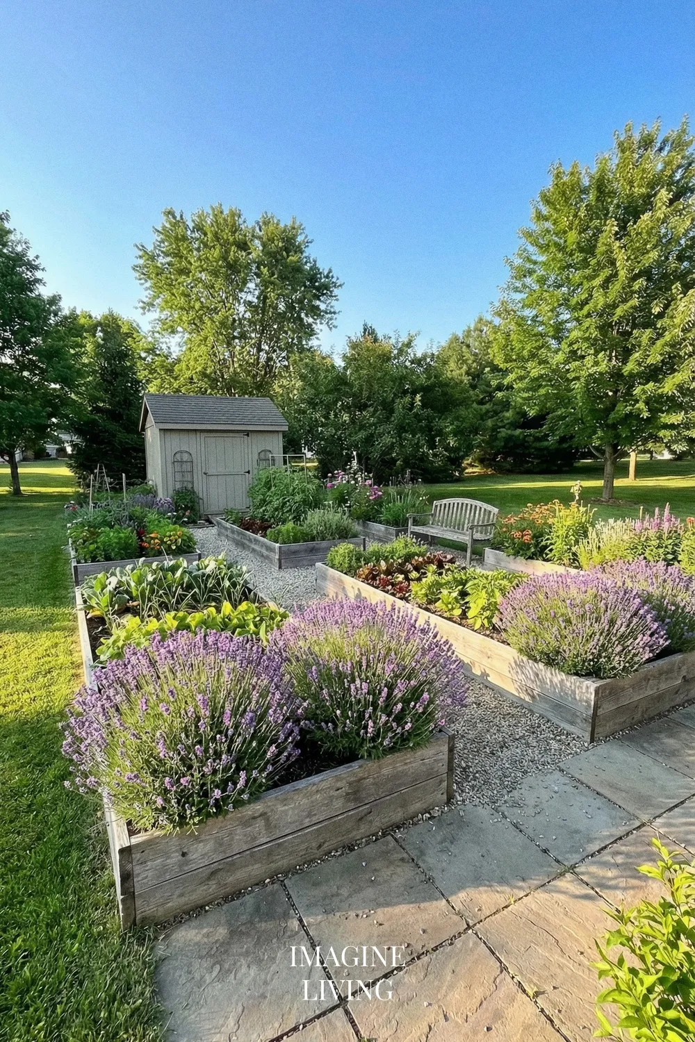 Another advantage is visual structure. Raised beds give the garden a crisp framework, and lavender’s rounded mounds and upright blooms fit beautifully into that organized format. It gives a backyard garden a more designed look while still feeling relaxed and natural in summer.
