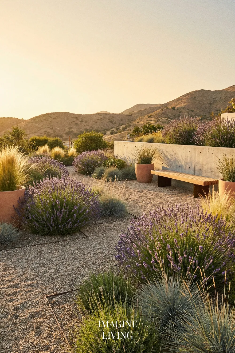 Drought-Tolerant Gravel Garden with Lavender