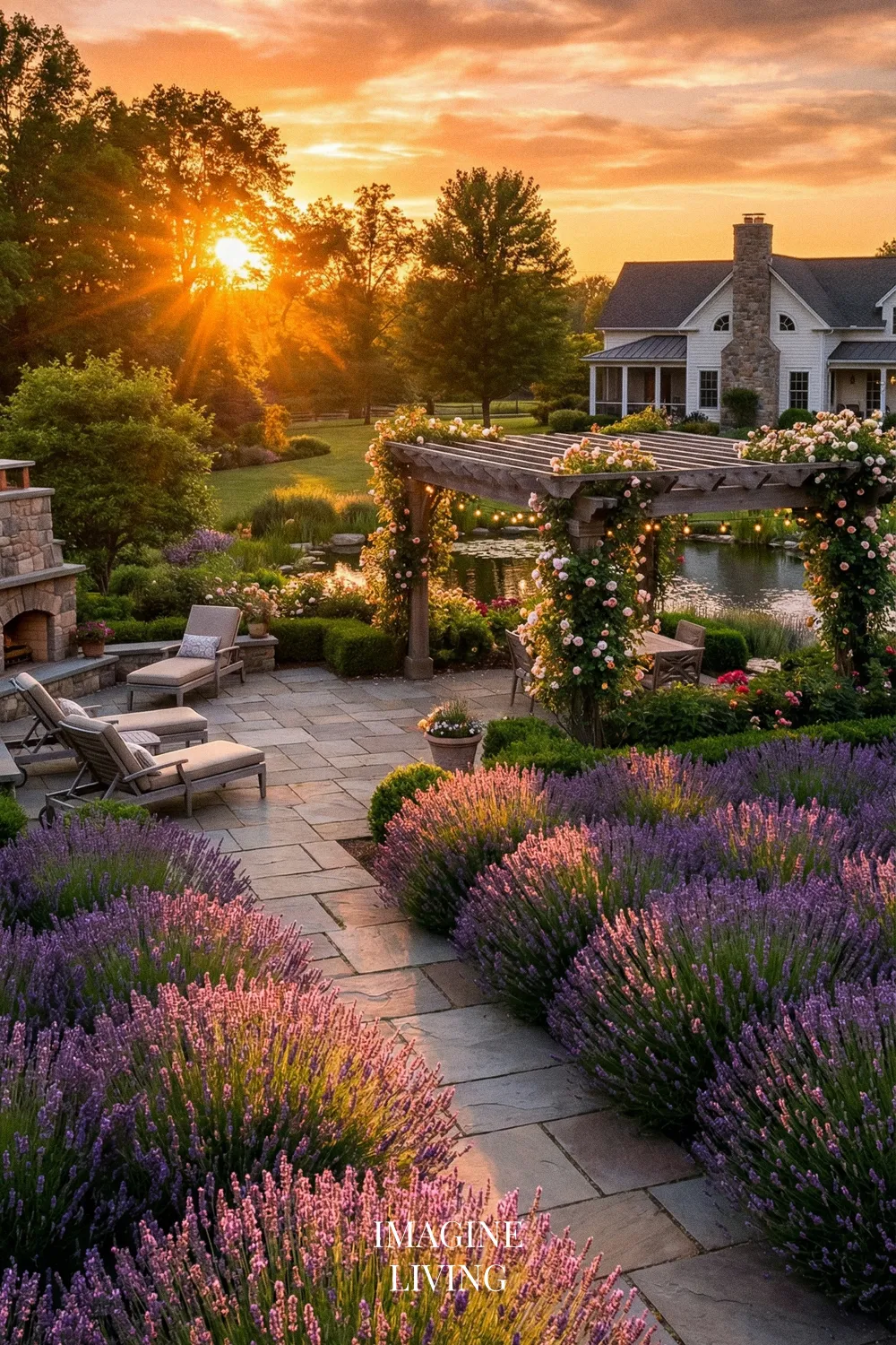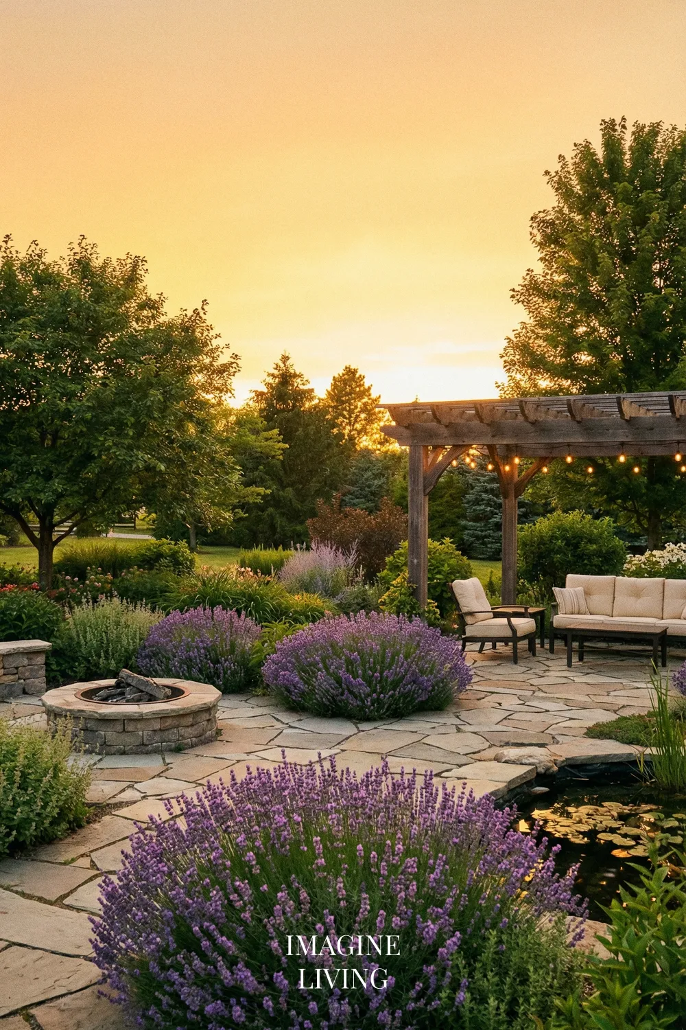 Golden Summer Backyard with Lavender at Sunset