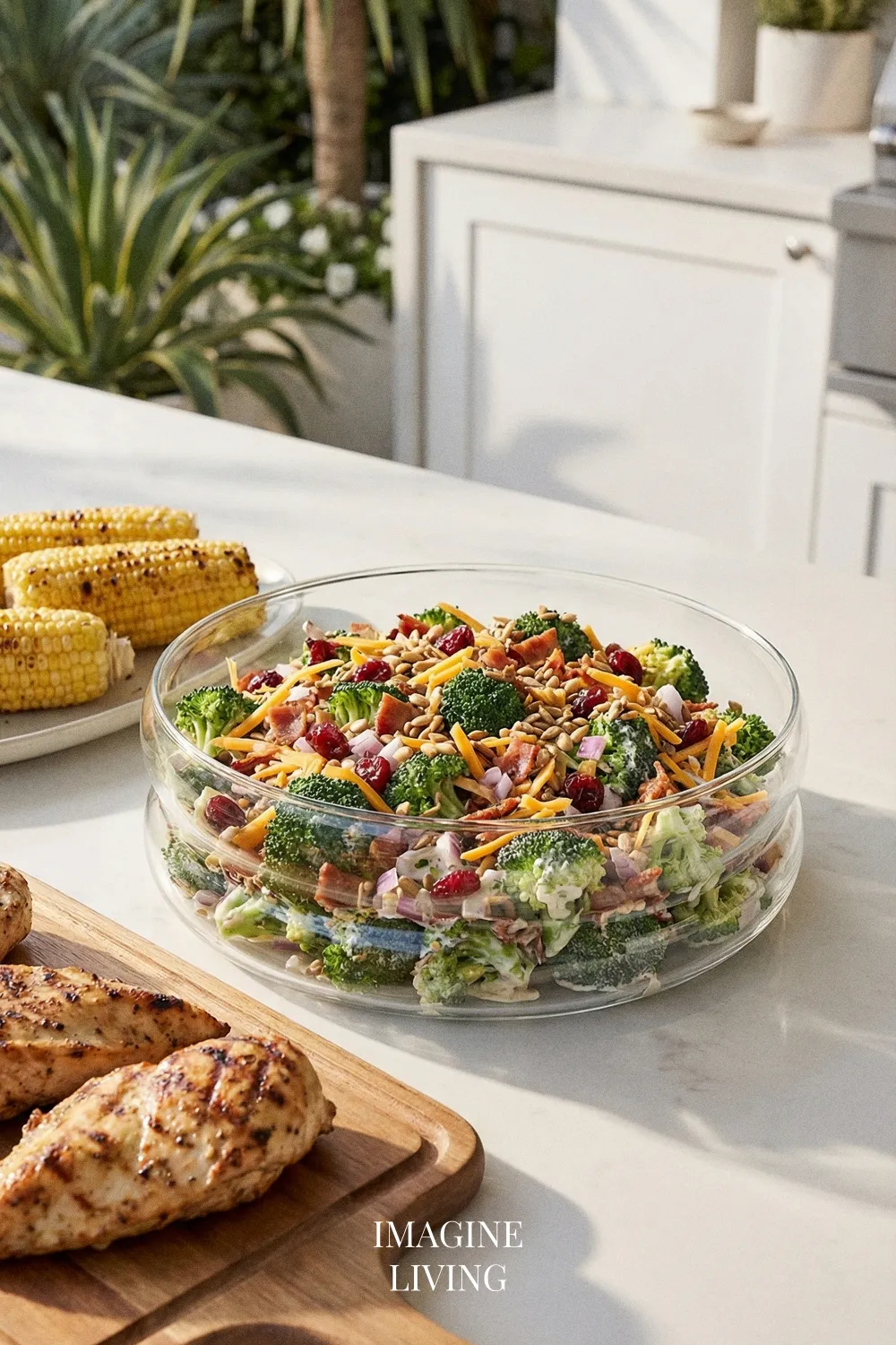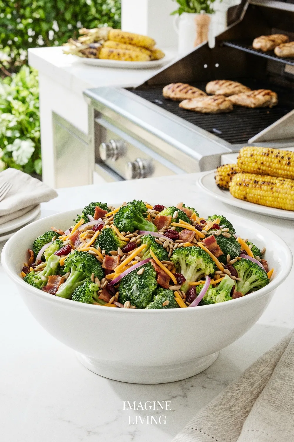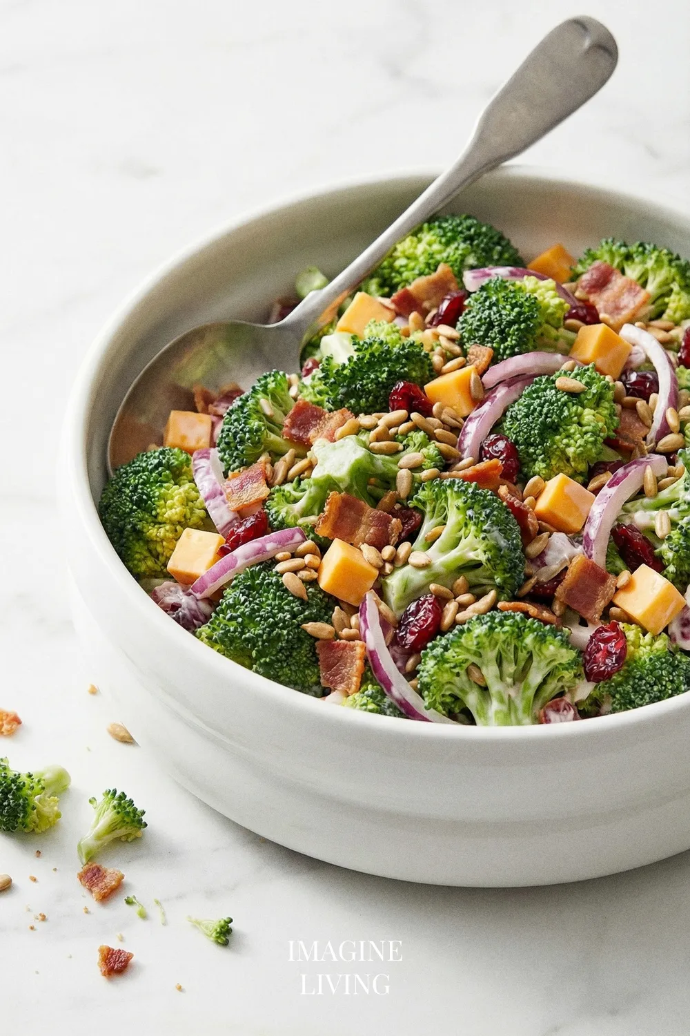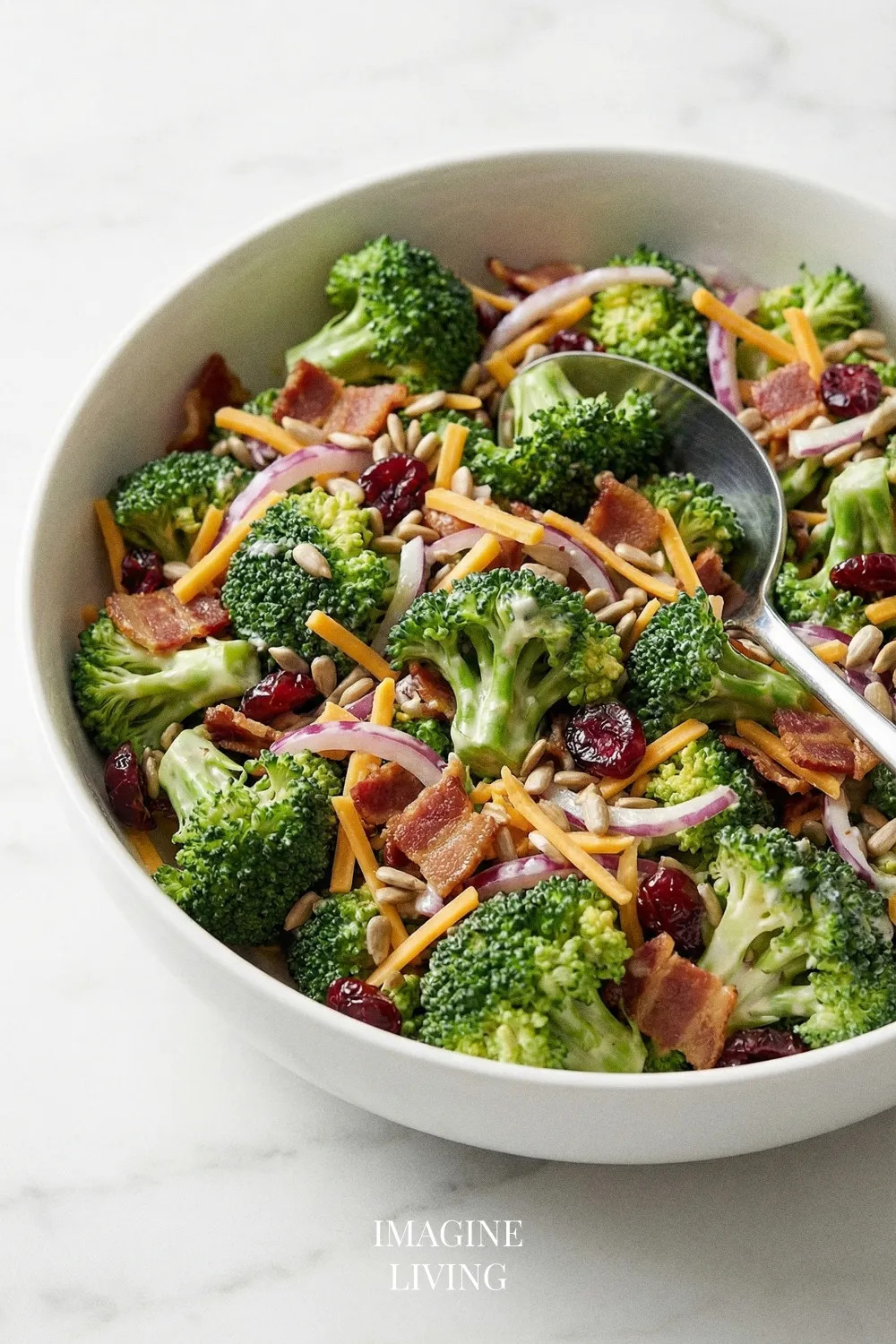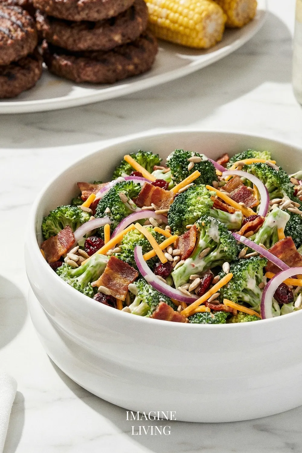 “Broccoli salad with bacon—crunchy, creamy, and full of flavor.” Imagine Living