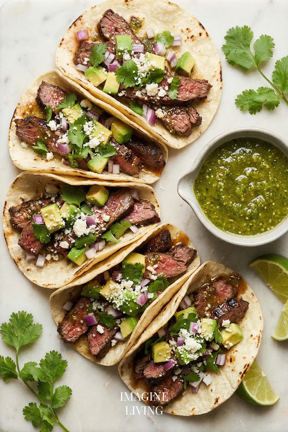 “Carne asada tacos—smoky, juicy, and packed with bold flavor.” Imagine Living