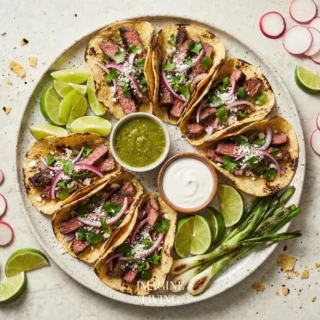 Sizzling carne asada tacos filled with marinated beef and fresh toppings, making for a fiesta of flavors. Perfect for casual gatherings or a weeknight dinner, ready in under 30 minutes.
