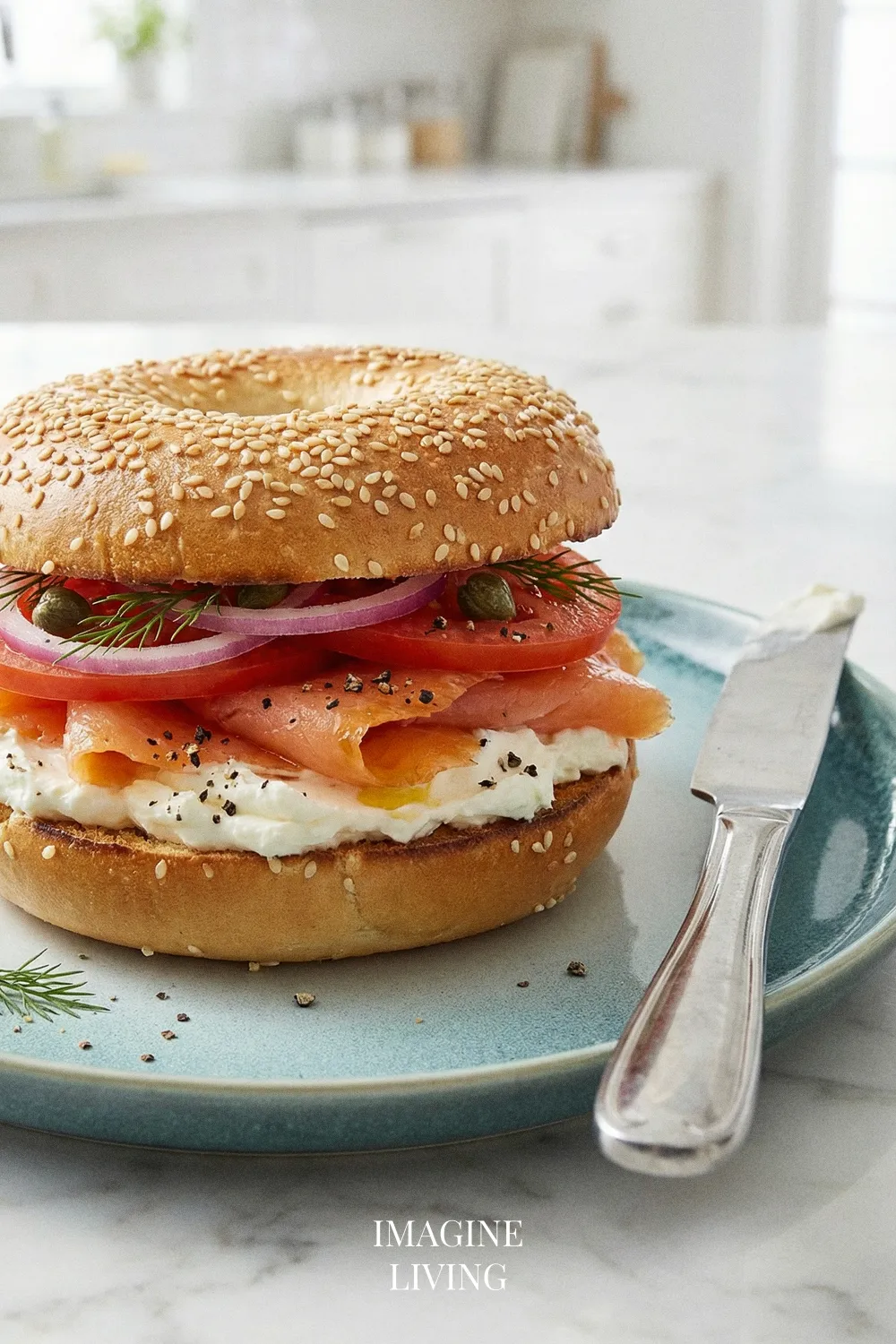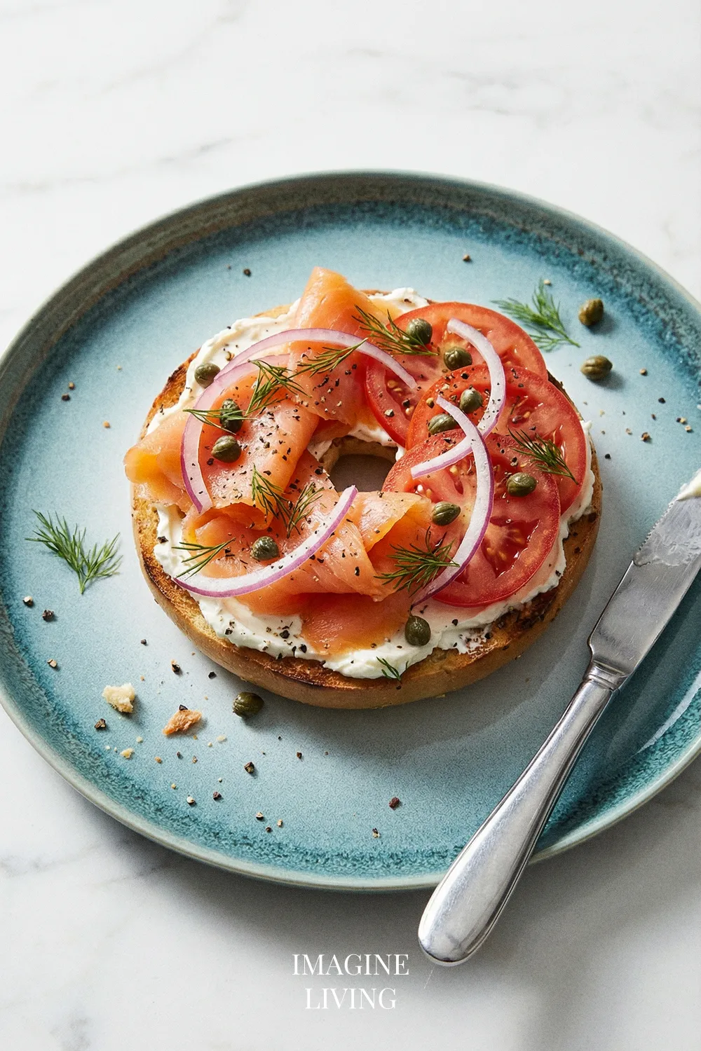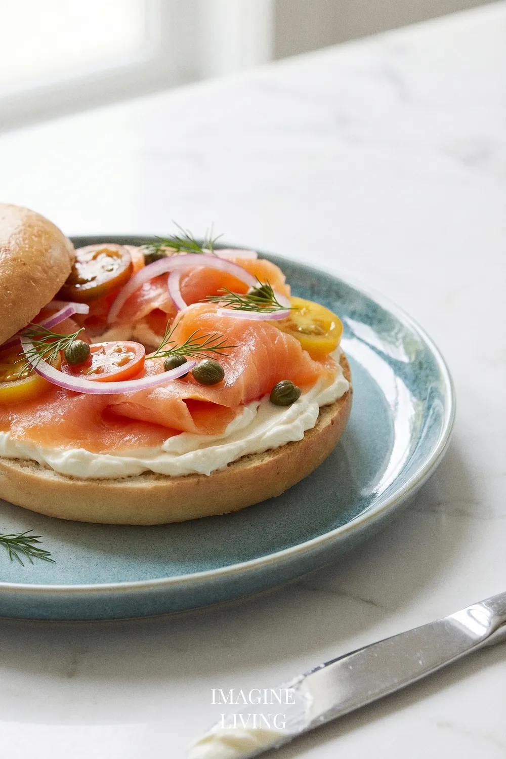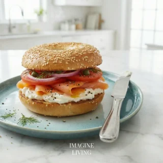 “Classic lox and cream cheese bagel—salty, creamy, and perfectly balanced.” Imagine Living