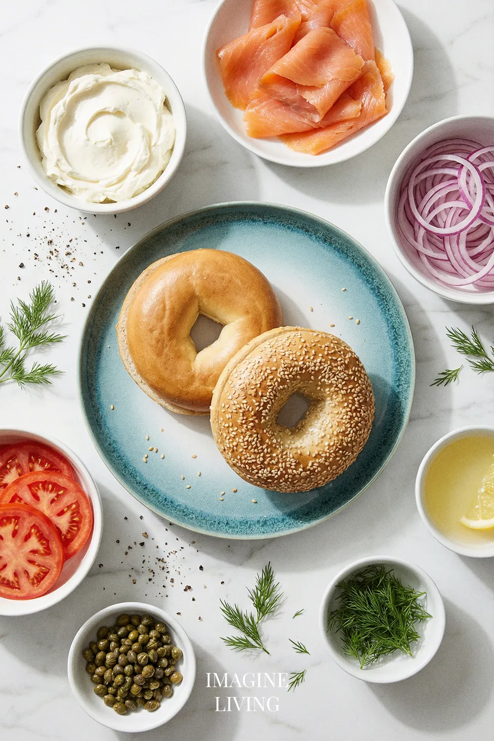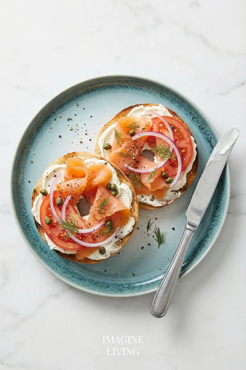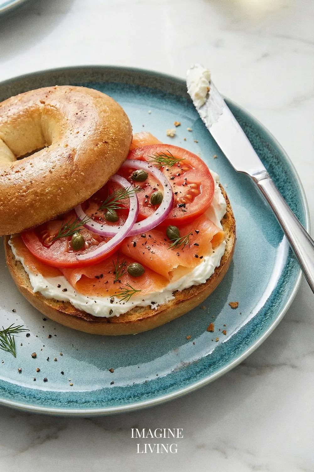 “Classic lox and cream cheese bagel—salty, creamy, and perfectly balanced.” Imagine Living