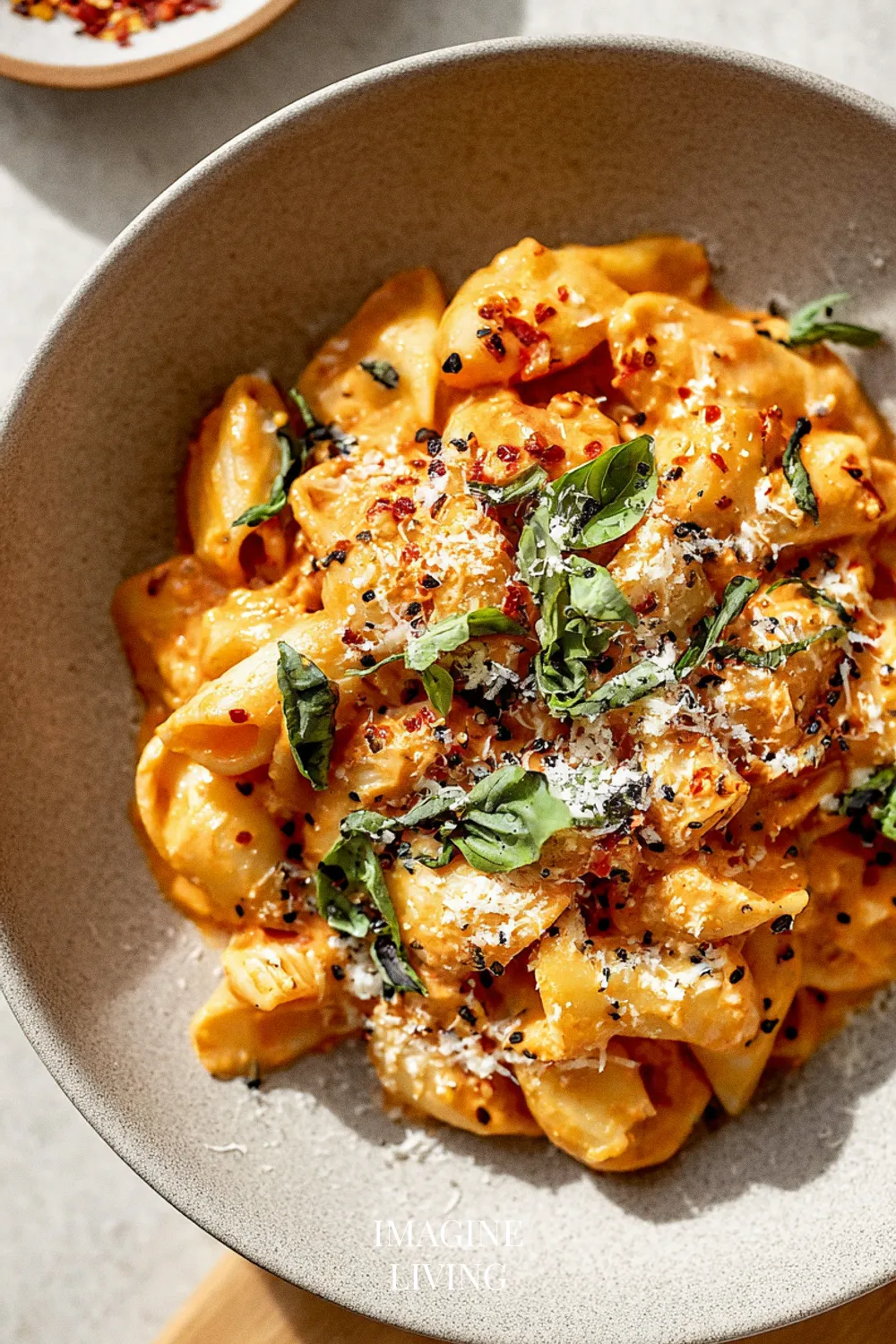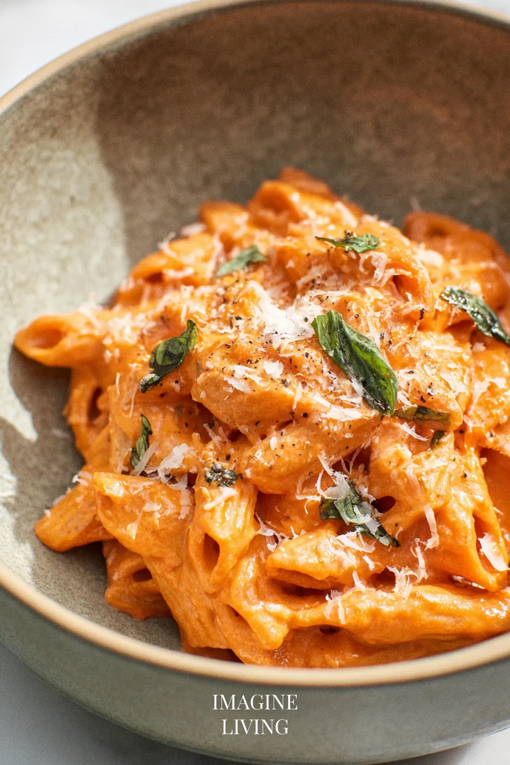 Serve creamy tomato basil pasta in warm bowls, garnished with fresh basil and a generous sprinkle of grated Parmesan. A simple green salad with vinaigrette brings a nice contrast, and a chilled white wine fits easily alongside it.