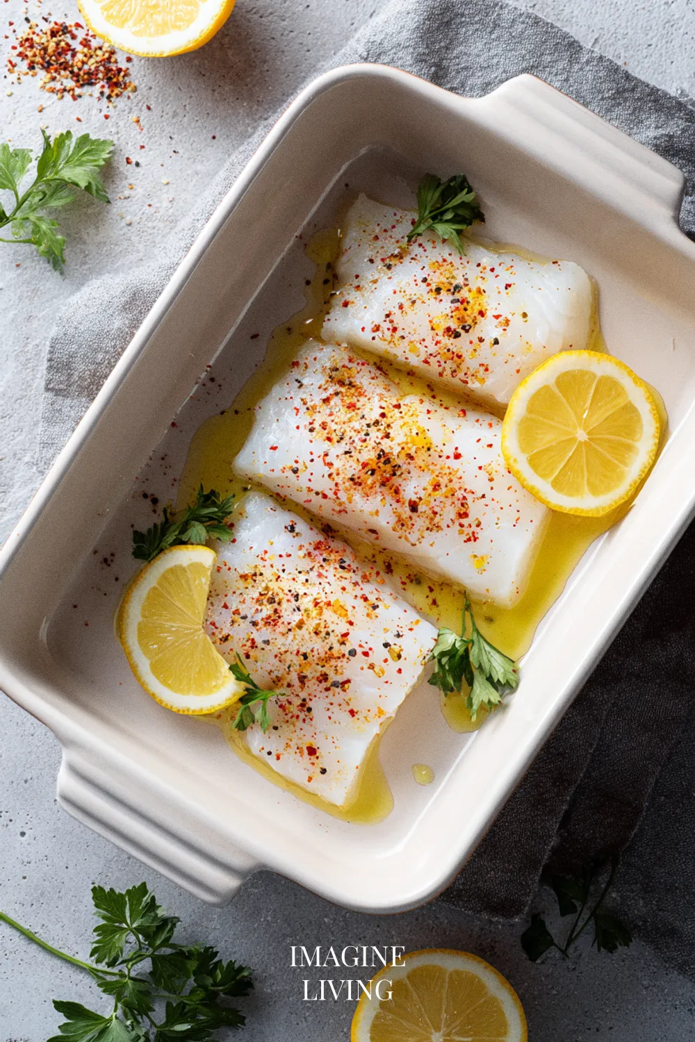 If using skin-on fillets, consider removing it for a more appealing presentation. The fish sits more evenly in the dish without it.