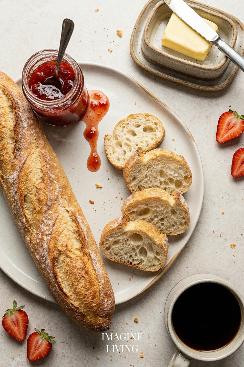 “French baguette—crisp crust, airy crumb, bakery perfection.” Imagine Living