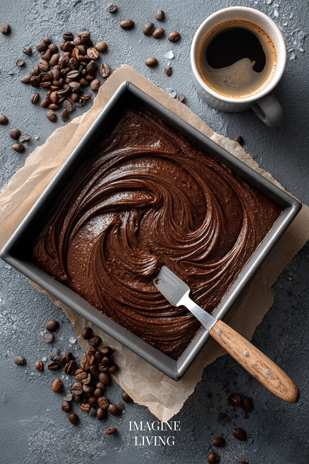There’s a moment, right as the chocolate melts into the warm espresso, when the kitchen smells a little like a café. I always pause there—it’s a small reminder that this recipe is wonderfully forgiving, even if you’re not measuring with absolute precision. And there’s something quietly amusing about how such simple ingredients can look so serious before turning into something so soft and fudgy.