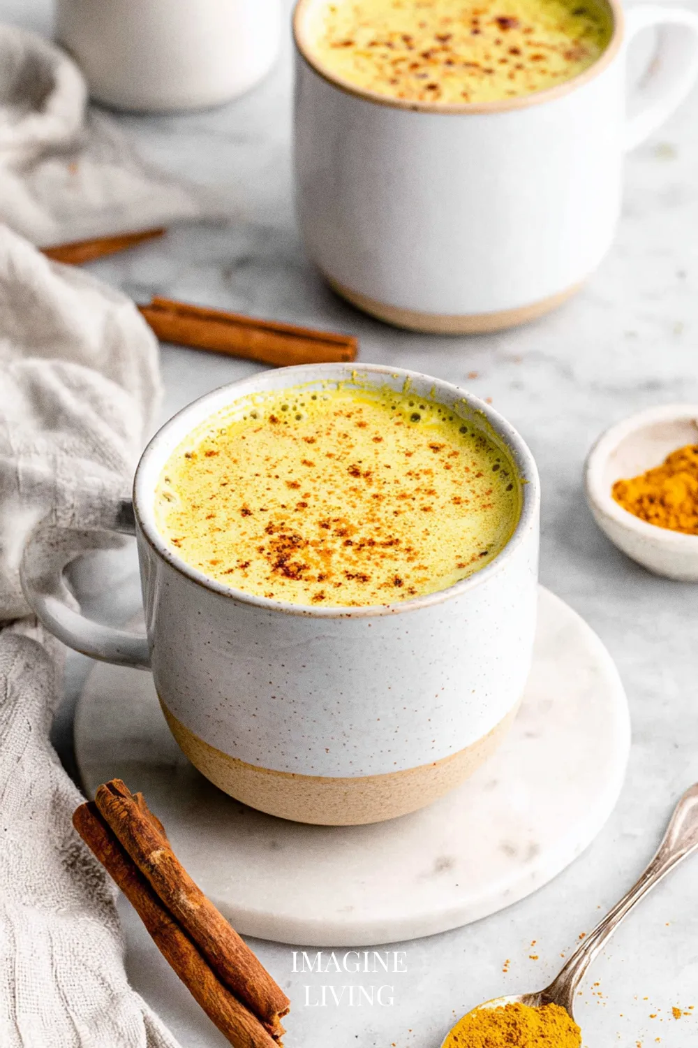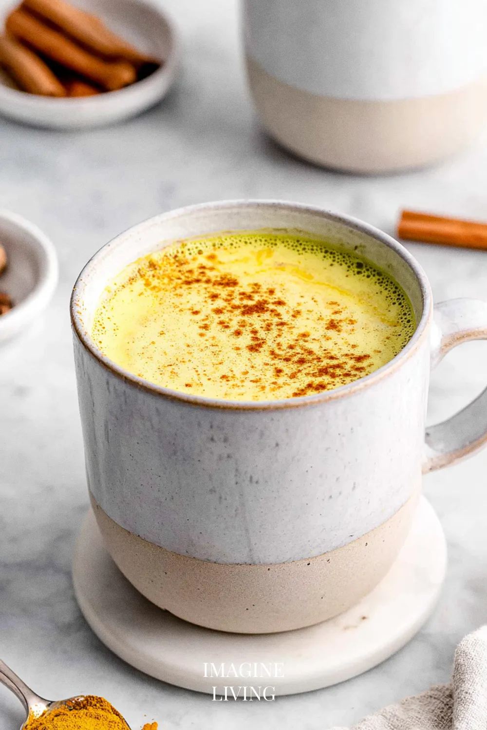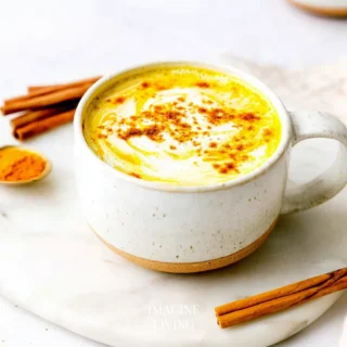 • Pour the Golden Milk Turmeric Latte into your favorite mug or heatproof glass. Finish it off with a sprinkle of cinnamon or nutmeg on top for an inviting aroma.