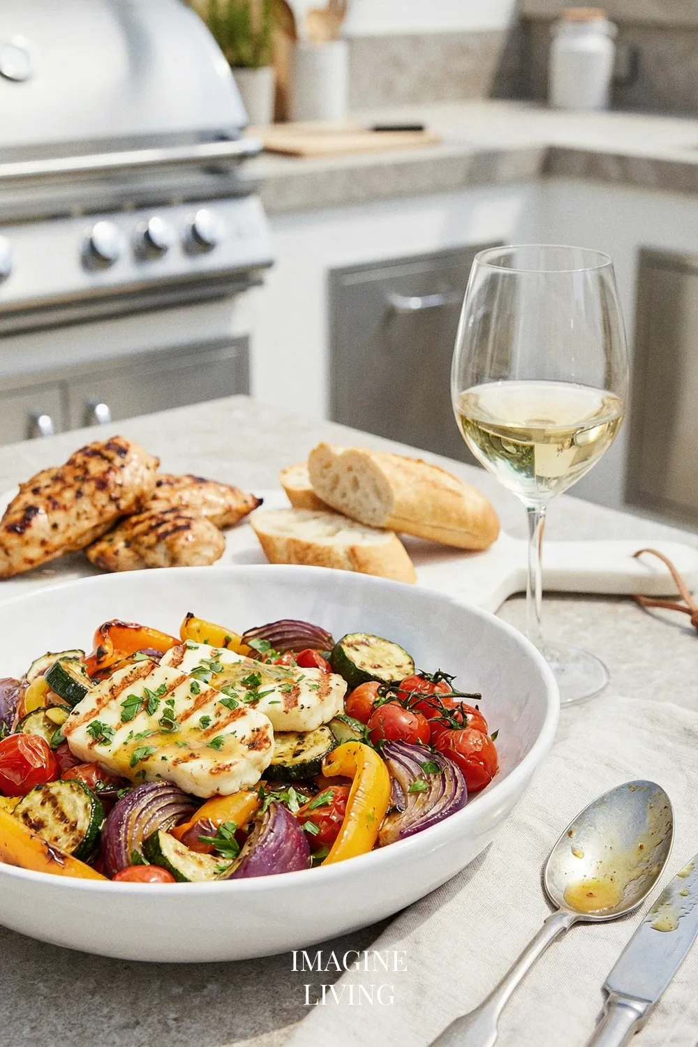 “Crisp halloumi, tender vegetables, and a bowl full of summer energy.” Imagine Living