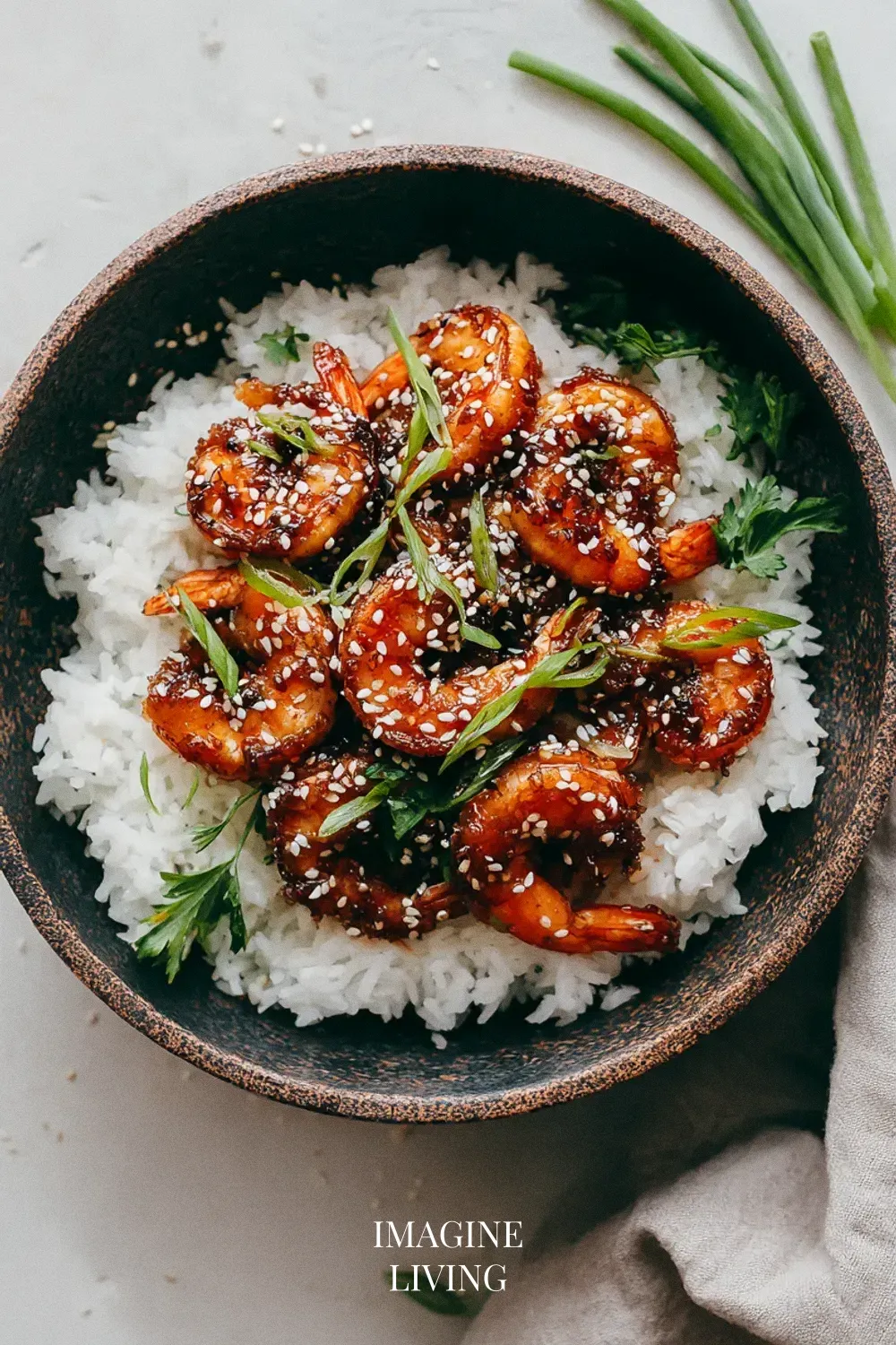“Honey garlic shrimp bowls for busy nights and cozy love.” Imagine Living