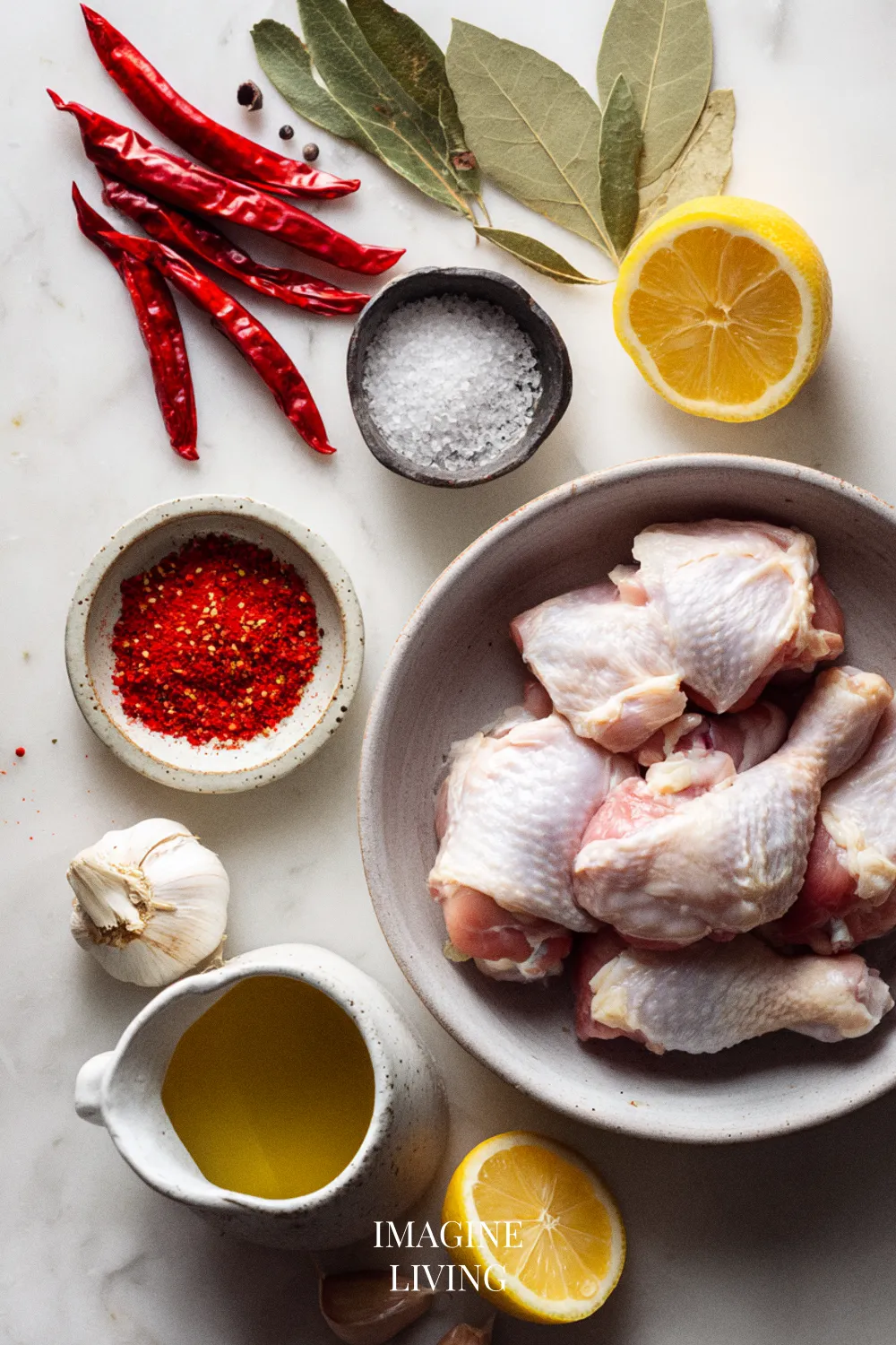 - In a mixing bowl, whisk together olive oil, vinegar, chopped chili peppers, minced garlic, lemon juice, smoked paprika, salt, and black pepper. This vibrant marinade will infuse your chicken with incredible flavor.