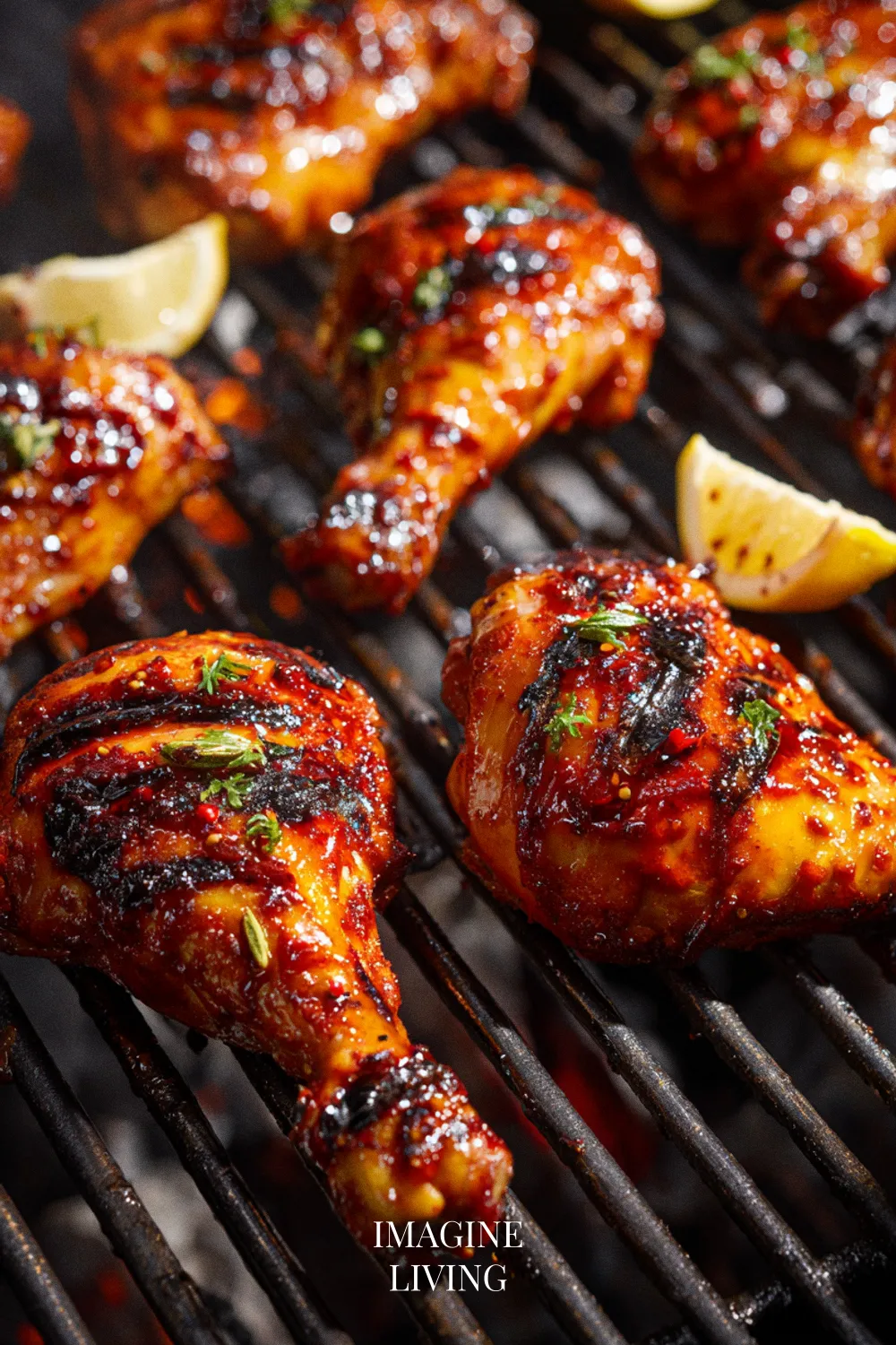 Remove the chicken from the marinade, letting excess drip off. Place the chicken on the hot grill, skin-side down. Cook for 10-15 minutes on one side until nicely charred. Flip and continue to grill for another 10-15 minutes, ensuring the chicken is cooked through.