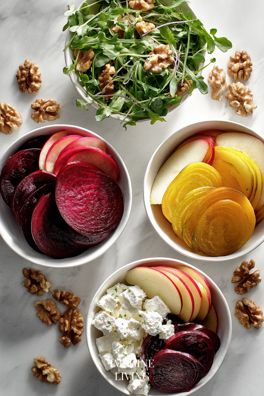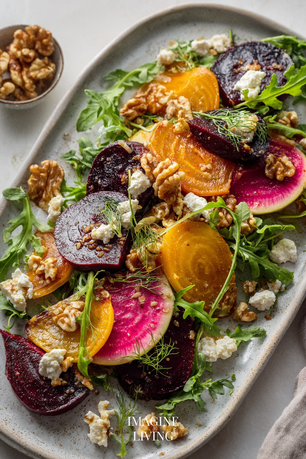 Pro tips: Use a spiralizer to create beet ribbons for a fun twist. Add dried cranberries or pomegranate seeds for burst of sweetness. Serve immediately for maximum freshness; the dressing is best when the greens are crisp. For a vegan version, substitute goat cheese with a cashew cream. Store the dressing separately; combine right before serving to keep greens crisp.